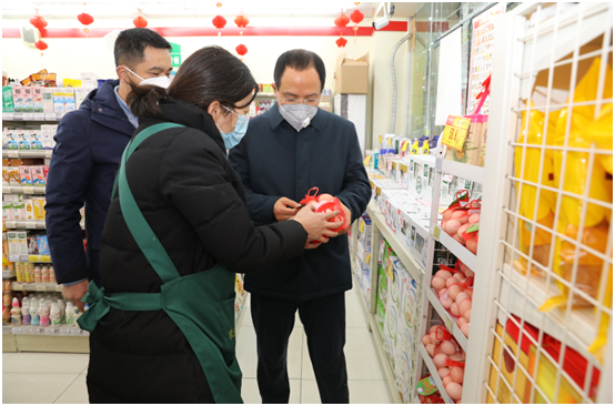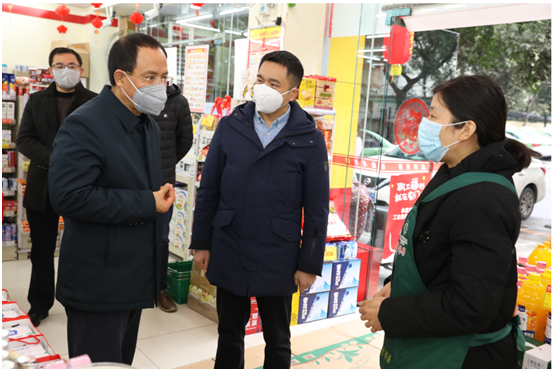 1月31日下午,四川省供銷社黨組書(shū)記、主任任曉春一行專門(mén)來(lái)到老鄰居超市,督導(dǎo)貨源配備、價(jià)格穩(wěn)控和疫情防控等方面工作。
